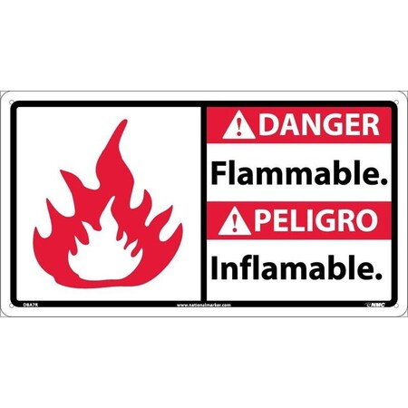 NMC DBA7P Bilingual OSHA Sign, Legend "DANGER - Flammable" with Graphic, 18" Length x 10" Height, Pressure Sensitive Vinyl, Black/Red on White