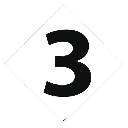 NMC DCN63 NFPA Number Label, "3", 7-1/2" Width x 7-1/2" Height, Pressure Sensitive Vinyl, Black on white (Pack of 5)