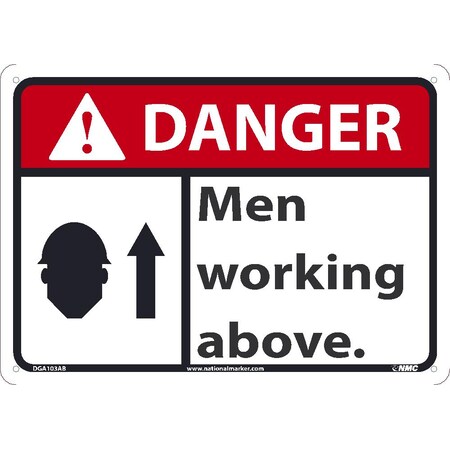 NMC DGA103AB Danger - Men Working Above Sign - 14 in. x 10 in. Standard Aluminum Danger Sign with Graphic, White/Black Text on Red/White Base