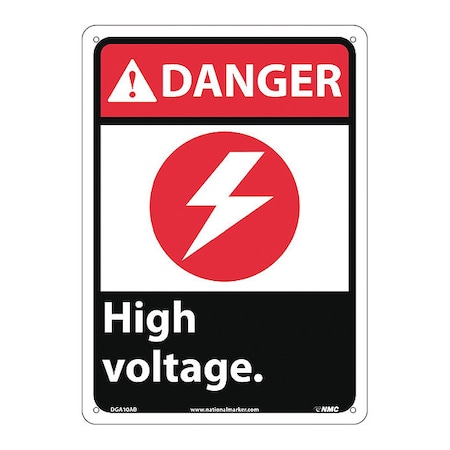 NMC DGA10AB ANSI Sign, Legend "DANGER - High voltage." with Electrical2 Graphic, 10" Length x 14" Height, 0.040 Aluminum, Black/Red on White