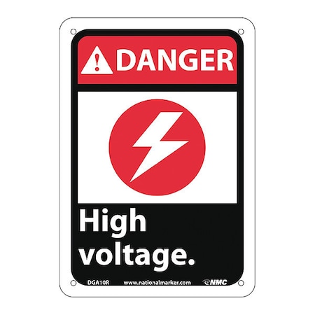 NMC DGA10R ANSI Sign, Legend "DANGER - High voltage." with Electrical2 Graphic, 7" Length x 10" Height, Rigid Plastic, Black/Red on White