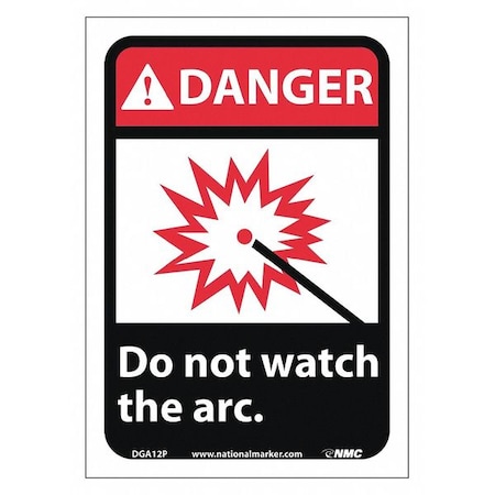 NMC DGA12P DANGER - Do not watch the arc. – 7 in. x 10 in. Pressure Sensitive Vinyl Danger Sign with Graphic, White Text on Red/Black Base