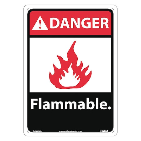 NMC DGA15AB ANSI Sign, Legend "DANGER - Flammable" with Graphic, 10" Length x 14" Height, Aluminum, Black/Red on White