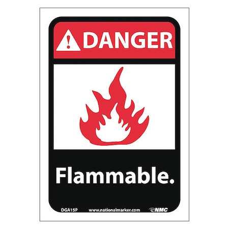 NMC DGA15P 10"x 7"ANSI Sign w/Legend:Danger - Flammable (w/Graphic), Pack of 50 pcs