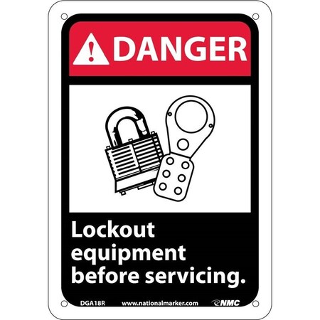 NMC DGA18PB ANSI Sign, Legend "DANGER - Lock out equipment before servicing" with Graphic, 10" Length x 14" Height, Pressure Sensitive Vinyl, Black/Red on White