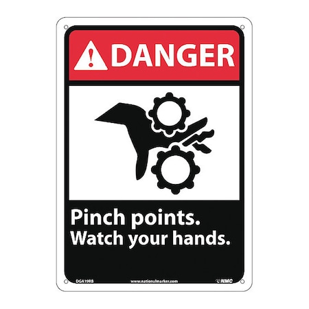 NMC DGA19RB 14"x 10"ANSI Sign w/Legend:Danger - Pinch Points Watch Your Hands (w/Graphic), Pack of 25 pcs