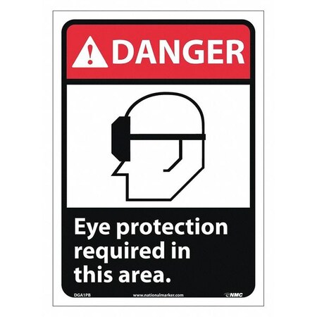 NMC DGA1PB 14"x 10"ANSI Sign w/Legend:Danger - Eye Protection Required In This Area (w/Graphic), Pack of 50 pcs