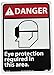 | Feature | Header "DANGER" and Legend "Eye protection required in this area" with graphic |