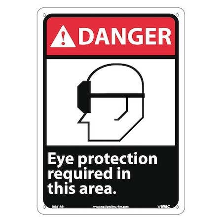 NMC DGA1RB 14"x 10"ANSI Sign w/Legend:Danger - Eye Protection Required In This Area (w/Graphic), Pack of 25 pcs