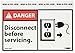 Dngr Disconnect Bef Servicing Label,PK5, Package Quantity 5