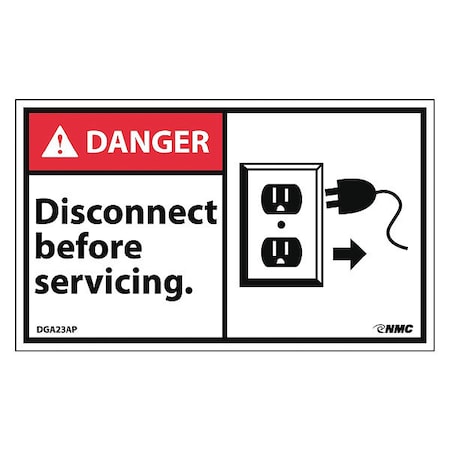 NMC DGA23AP 3"x 5"ANSI Sign w/Legend:Danger - Disconnect Before Servicing (Graphic), 25 Packs of 5 pcs