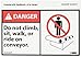 | Feature | Header "DANGER" and legend "Do not climb, sit, walk, or ride on conveyor." with graphic |