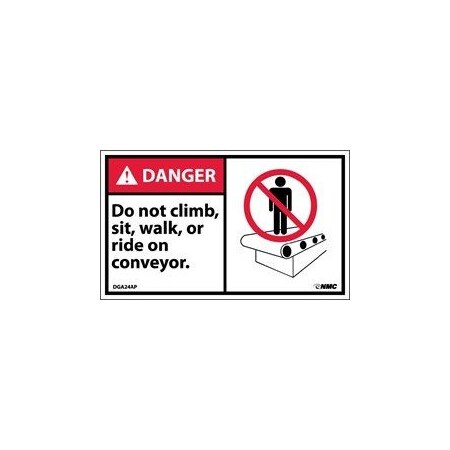 NMC DGA24AP 3"x 5"ANSI Sign w/Legend:Danger - Do Not Climb Sit Walk Or Ride On Conveyor (Graphic), 25 Packs of 5 pcs
