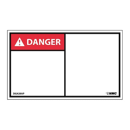 NMC DGA28AP 3"x 5"ANSI Sign w/Legend:Danger - Blank, 25 Packs of 5 pcs