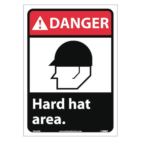 NMC DGA2PB 14"x 10"ANSI Sign w/Legend:Danger - Hard Hat Area (w/Graphic), Pack of 50 pcs