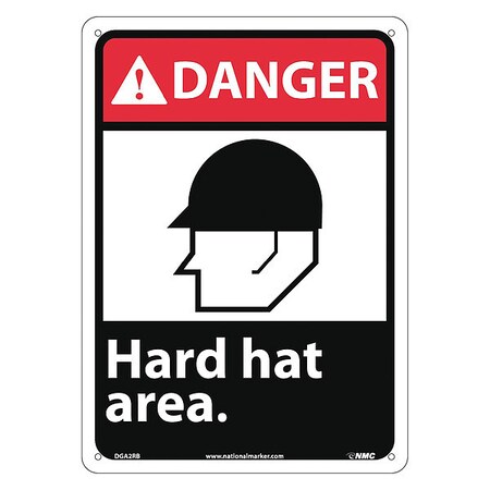 NMC DGA2RB 14"x 10"ANSI Sign w/Legend:Danger - Hard Hat Area (w/Graphic), Pack of 25 pcs