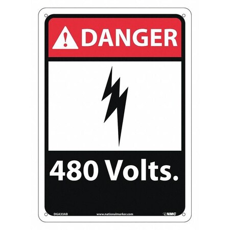 NMC DGA33AB ANSI Sign, Legend "DANGER - 480 Volts." with Graphic, 10" Length x 14" Height, 0.040 Aluminum , Black/Red on White