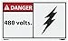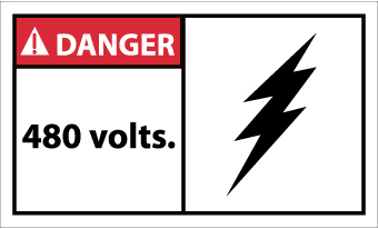 - Header "DANGER"and Legend "480 Volts." with graphic