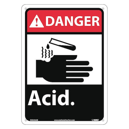 NMC DGA34AB ANSI Sign, Legend "DANGER - Acid." with Graphic, 10" Length x 14" Height, 0.040 Aluminum, Black/Red on White