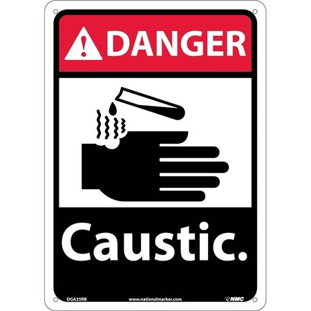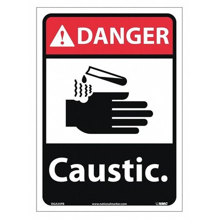 NMC DGA35PB ANSI Sign, Legend "DANGER - CAUSTIC with Graphic", 10" Length x 14" Height, Pressure Sensitive Vinyl, Red/Black on White