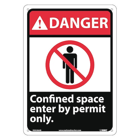 NMC DGA36AB ANSI Sign, Legend "DANGER - CONFINED SPACE ENTER BY PERMIT ONLY" with Graphic, 10" Length x 14" Height, Aluminum, Red/Black on White