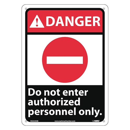 NMC DGA39AB DANGER - Do not enter authorized persons only. - 10 in. x 14 in., Aluminum Danger Sign with Graphic, White Text on Red/Black Base