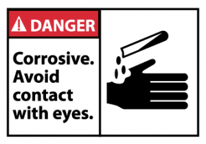 - Header "DANGER" and legend "Corrosive. Avoid contact with eyes and skin." with graphic