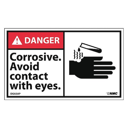 NMC DGA3AP ANSI Sign, Legend "DANGER - Corrosive. Avoid contact with eyes and skin." with Graphic, 3" Length x 5" Height, Pressure Sensitive Vinyl, White on Black (Pack of 5)