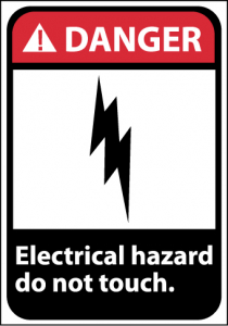 | Feature | Header "! DANGER" and legend "Electrical hazard do not touch." with graphic |
