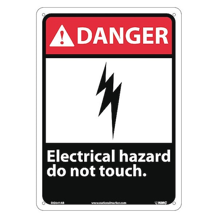 NMC DGA41AB OSHA Sign, Legend "! DANGER - Electrical hazard do not touch." with Graphic, 10" Length x 14" Height, Aluminum, White on Black