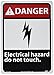 | Feature | Header "! DANGER" and legend "Electrical hazard do not touch." with graphic |