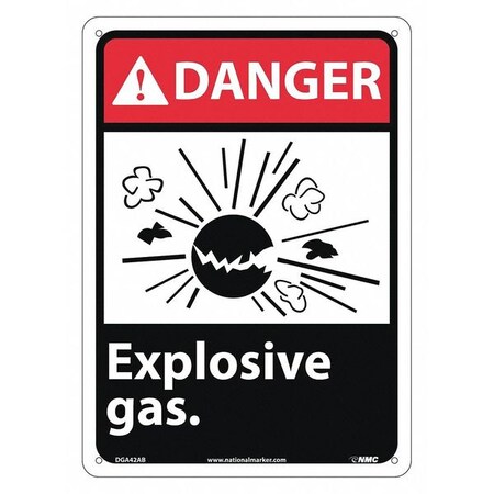 NMC DGA42AB ANSI Sign, Legend "DANGER - Explosive gas" with Graphic, 10" Length x 14" Height, Aluminum, Black/Red on White