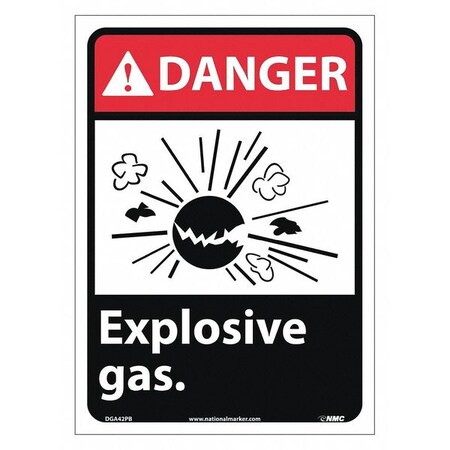 NMC DGA42PB ANSI Sign, Legend "DANGER - Explosive gas" with Graphic, 10" Length x 14" Height, Pressure Sensitive Vinyl, Black/Red on White