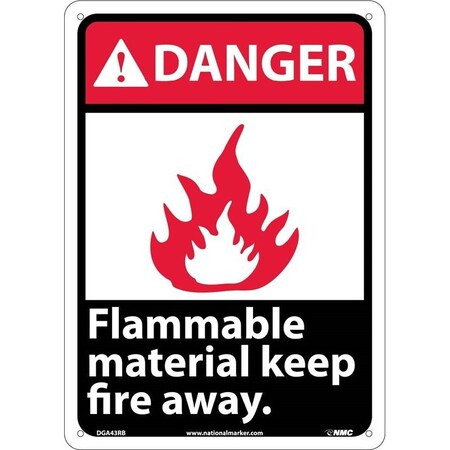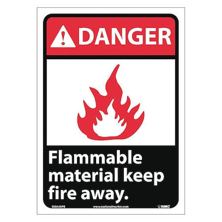 NMC DGA43PB ANSI Sign, Legend "DANGER - Flammable material keep fire away" with Graphic, 10" Length x 14" Height, Pressure Sensitive Vinyl, Black/Red on White