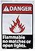 | Feature | Header "DANGER" and Legend "FLAMMABLE NO MATCHES OR OPEN LIGHTS" with graphic |