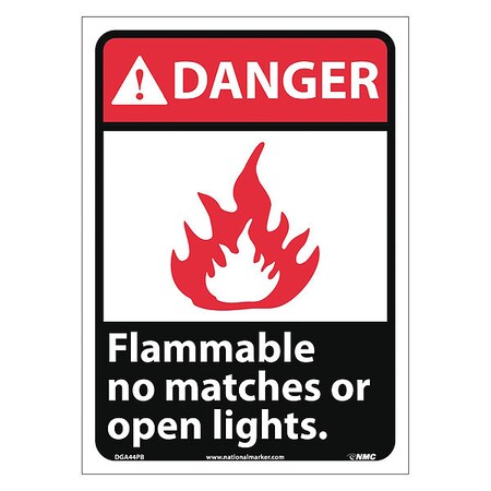 NMC DGA44PB 14"x 10"ANSI Sign w/Legend:Danger - Flammable No Matches Or Open Lights, Pack of 50 pcs