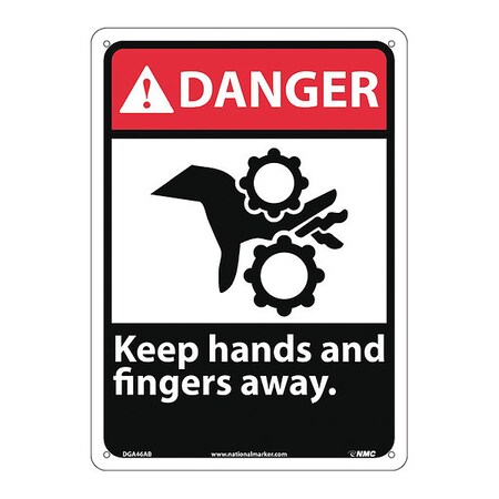 NMC DGA46AB ANSI Sign, Legend "DANGER - Keep hands and fingers away." with Graphic, 10" Length x 14" Height, 0.040 Aluminum, Black/Red on White
