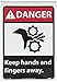 - Header "DANGER" and Legend "- Keep hands and fingers away." with graphic
