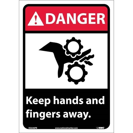 NMC DGA46PB ANSI Sign, Legend "DANGER - Keep hands and fingers away." with Graphic, 10" Length x 14" Height, Pressure Sensitive Adhesive Vinyl, Black/Red on White