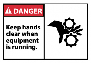 | Feature | Header "DANGER" and Legend "- Keep hands clear when equipment is running." with graphic |