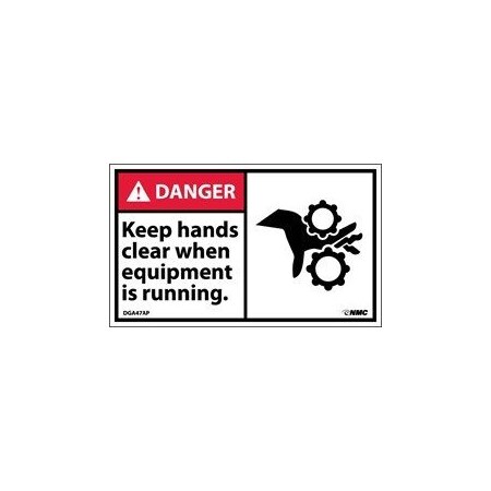 NMC DGA47AP 3"x 5"ANSI Sign w/Legend:Danger - Keep Hands Clear When Equipment Is Running, 25 Packs of 5 pcs