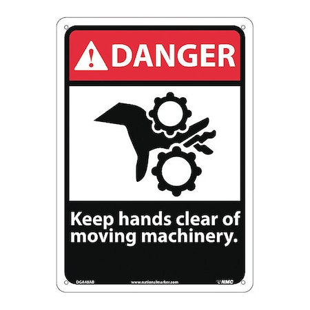 NMC DGA48AB ANSI Sign, Legend "DANGER - Keep hands clear of moving machinery." with graphic, 10" Length x 14" Height, 0.040 Aluminum, Black/Red on White