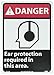 - Visibility: the legend “DANGER - Ear protection required in this area.” is printed on the sign in clear, bold font to ensure the message is easily visible and readable in most lighting conditions and even from a distance