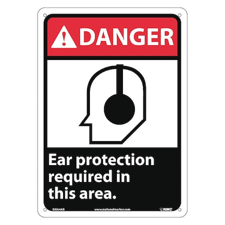 NMC DGA4AB DANGER - Ear protection required in this area. - 10 in. x 14 in. Aluminum Danger Sign with Graphic, White Text on Red/Black Base