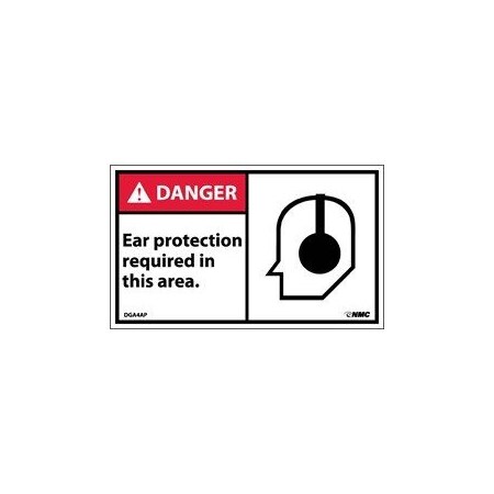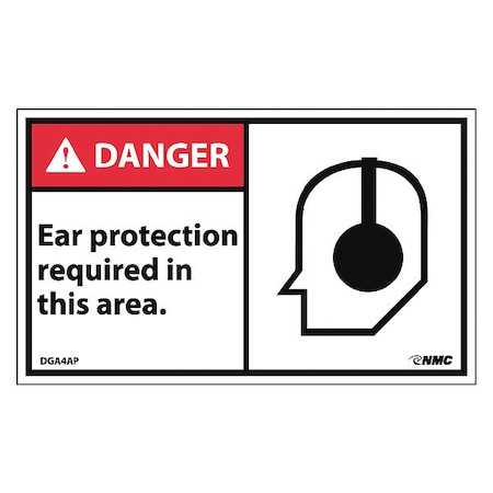 NMC DGA4AP ANSI Sign, Legend "DANGER - Ear protection required in this area." with Graphic", 3" Length x 5" Height, Pressure Sensitive Vinyl, White on Black (Pack of 5)