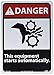 - Header "DANGER" and legend "This Equipment Starts Automatically." with graphic