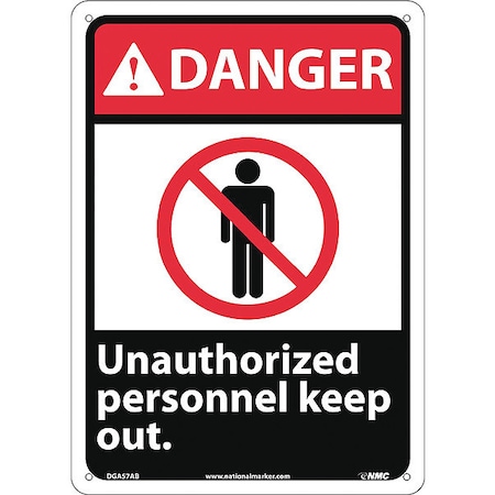 NMC DGA57AB DANGER - Unauthorized Personnel Keep Out. - 10 in. x 14 in., Aluminum Danger Sign with Graphic, White/Red/Black Print