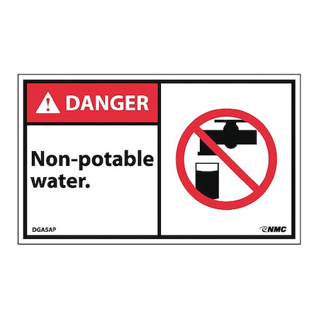 NMC DGA5AP 3"x 5"ANSI Sign w/Legend:Danger - Non-Potable Water (Graphic), 25 Packs of 5 pcs