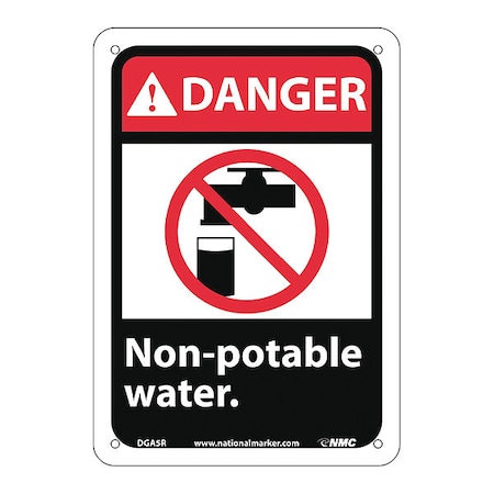 NMC DGA5R ANSI Sign, Legend "DANGER - Non-potable water" with Graphic, 7" Length x 10" Height, Rigid Plastic, Black/Red on White