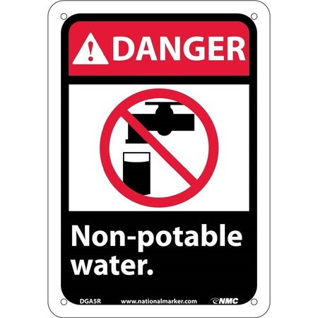 NMC DGA5RB ANSI Sign, Legend "DANGER - Non-potable water" with Graphic, 10" Length x 14" Height, Rigid Plastic, Black/Red on White
